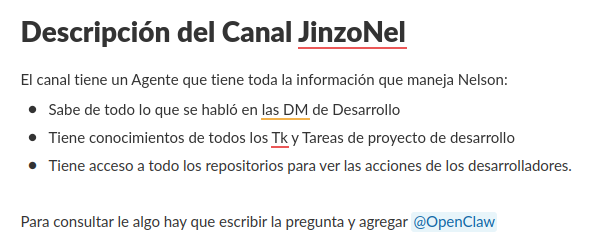 Desde el slack -> canal 444-desarrollo-nel se pueden hacer consultas al Agente que representa a Nelson, en su rol de encargado de desarrollo, sobre estado de desarrollos